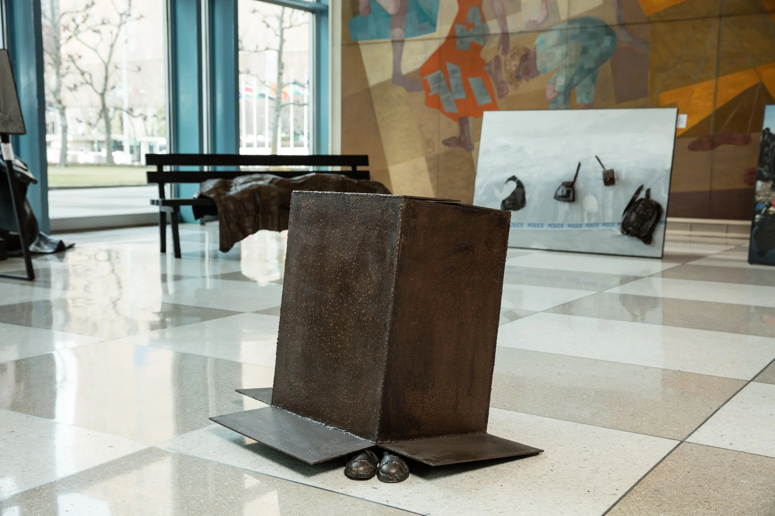 Millions of refugees are millions of packages, suitcases, and sacks. “Life packages” that hold the desire to survive. In it, they pack both hopes and pains. Behind every package, someone is looking for a place. The objects that people take, in one package, represent their identity, memories, sense of belonging, and hopes for the future. Iron expresses the will to hold on strongly to the identity which the objects symbolize. It renders them eternal and meaningful, like metal monuments. The combinations that Ben-Ami creates between the images taken by Reuter’s photographers and her iron sculptures are the heart of this exhibition. Shimon Peres, the late President of the State of Israel wrote “Orna, you prove that there is nothing softer than iron, and nothing stronger than a woman.”