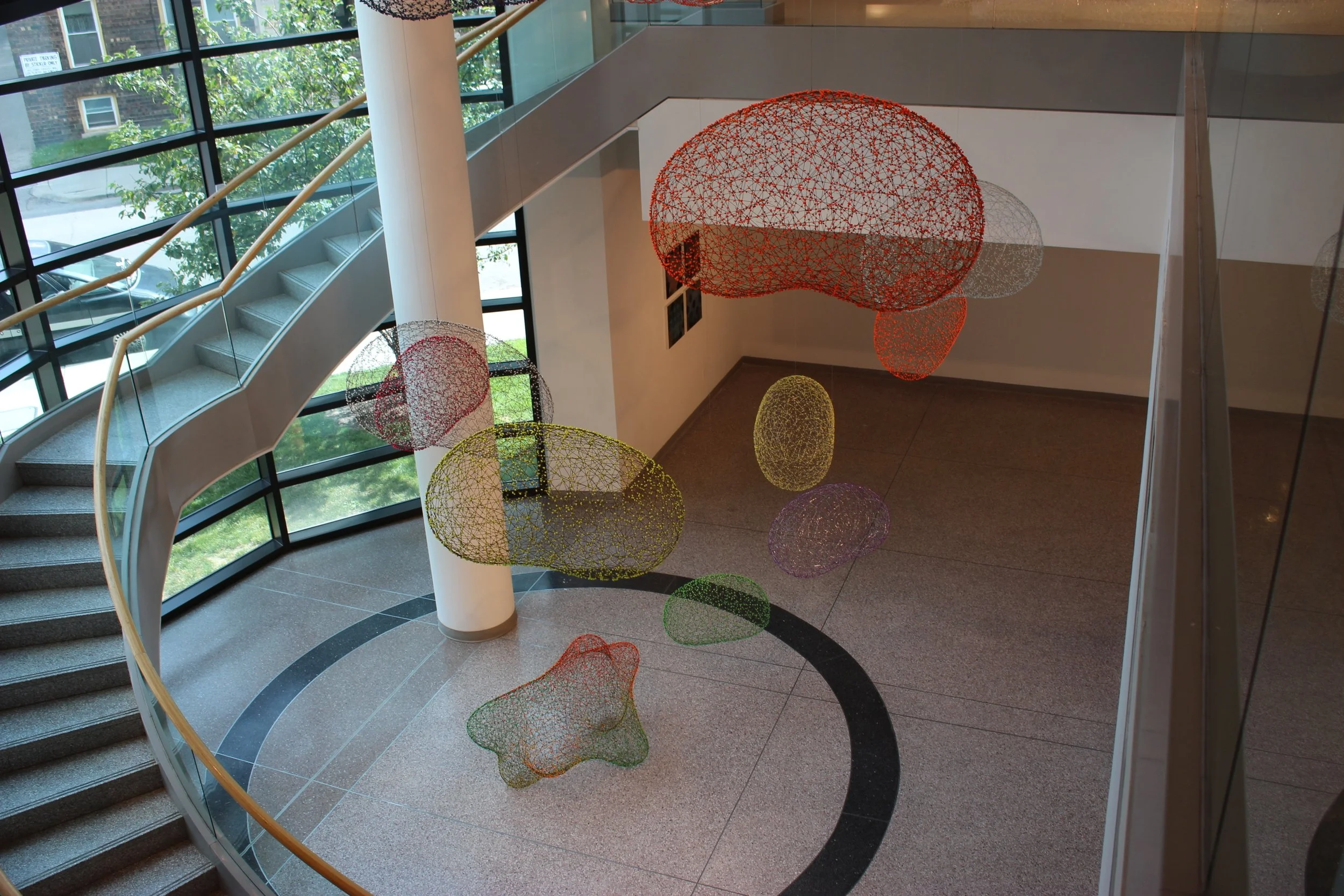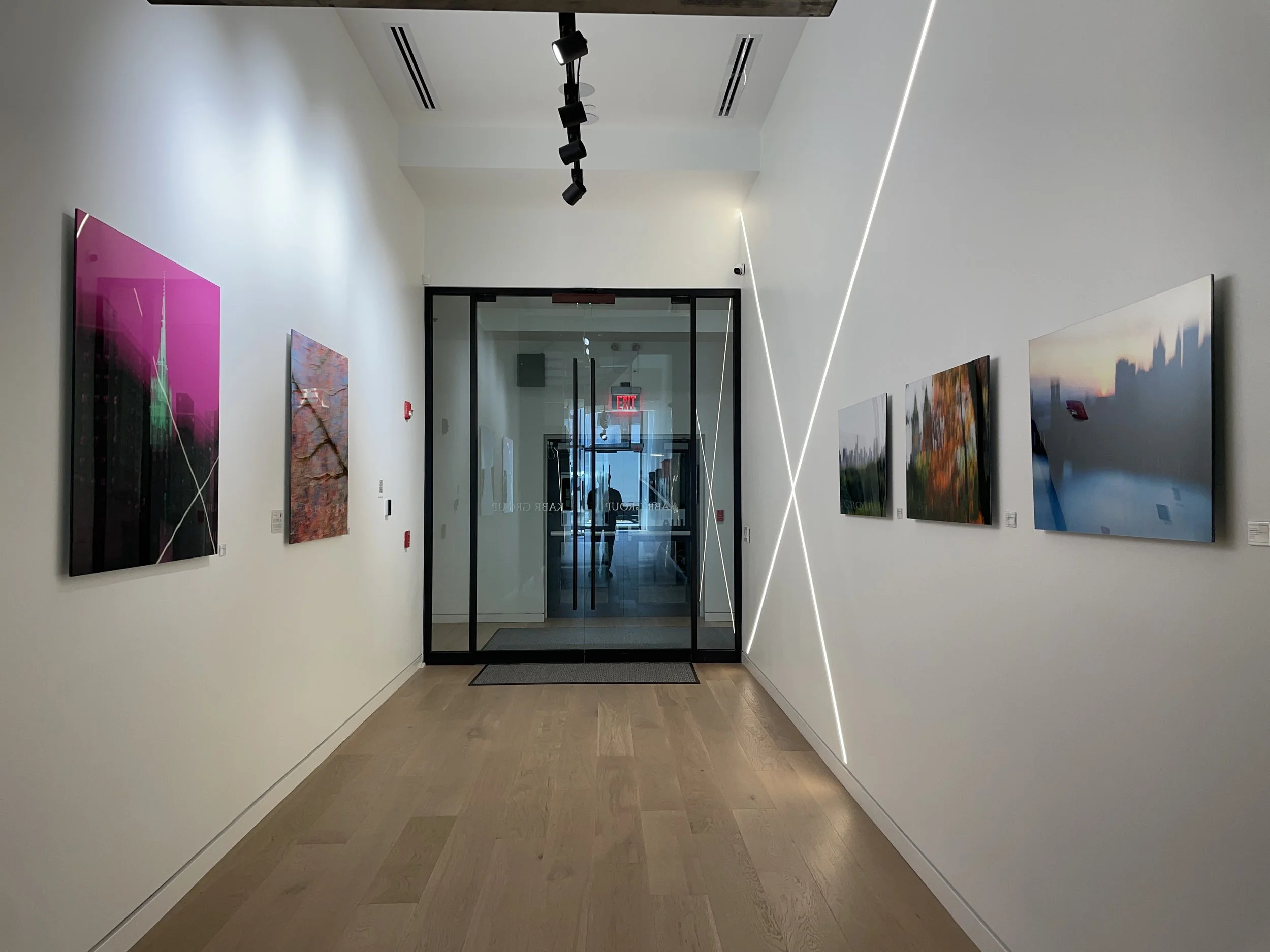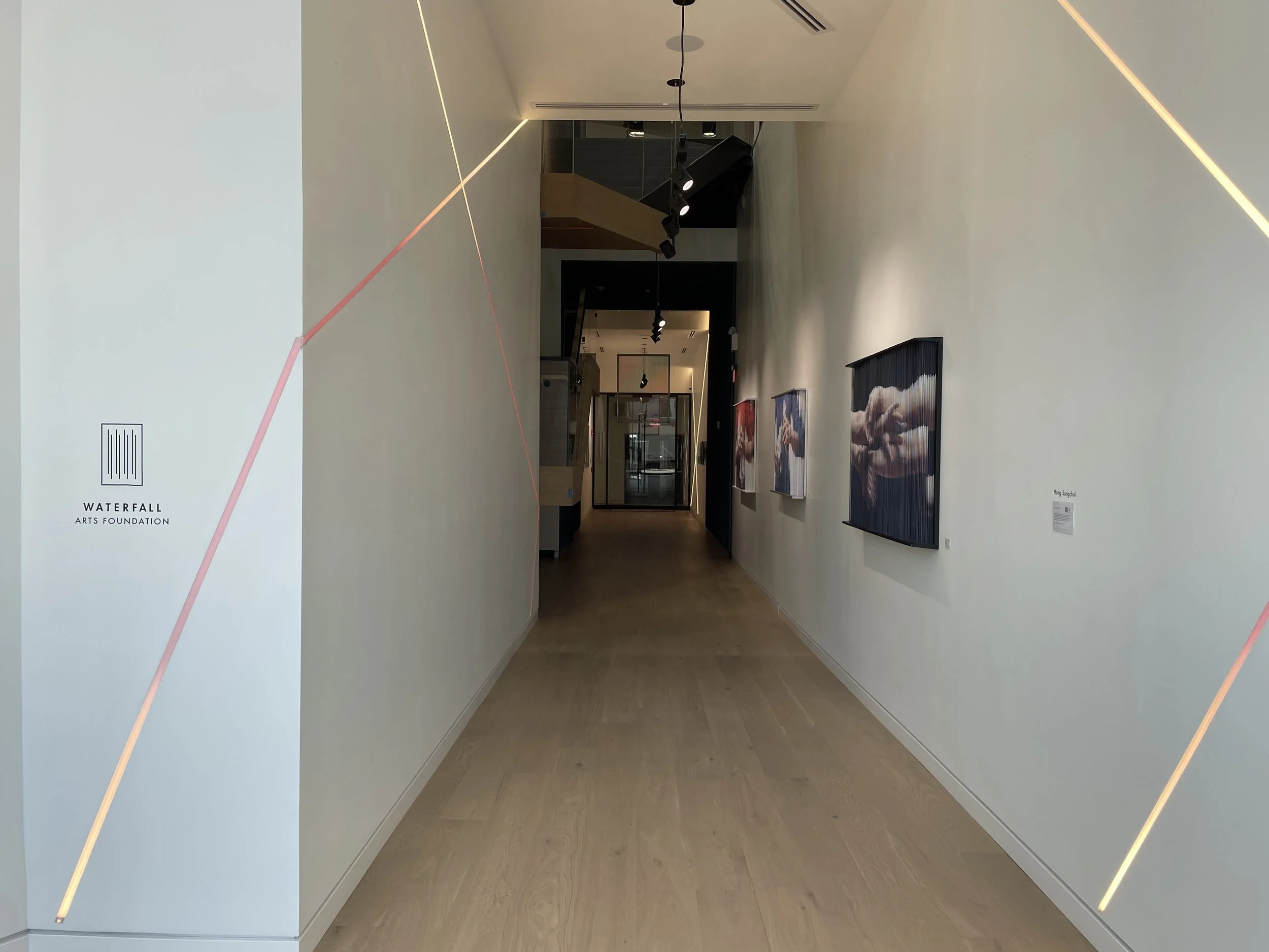 The two-person exhibition of Artist Hong Sungchul, and Luca Artioli on the ground level is organized by Waterfall Arts Foundation. Selected artworks by multimedia artist Shane Pennington are displayed on the 2nd level, including the 13-foot-tall painting accompanied by a digital projection of dandelion seeds floating within the air, “Carmen’s Wish.”
